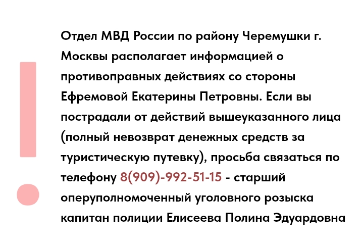 Все кого она кинула звоните срочно следователю по скриншоту ниже. Люди так же вступайте в группу ват сап. Знакомьтесь с другими потерпевшими. Давайте все вместе привлечет Ефремову к реальному уголовному заключению за все ее мошенничество.