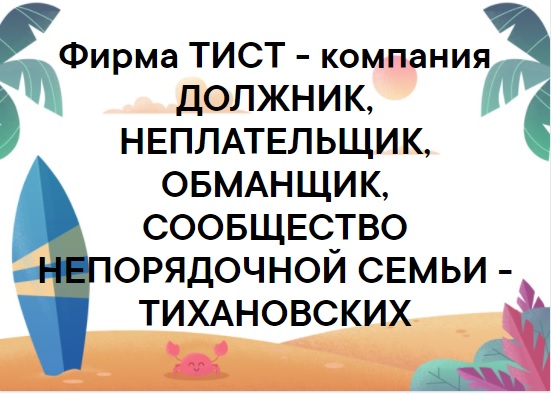 ТИСТ ПКФ ООО Осторожно - неплательщики ФИРМА ТИСТ г. ЧЕЛЯБИНСК, ТИХАНОВСКИЕ