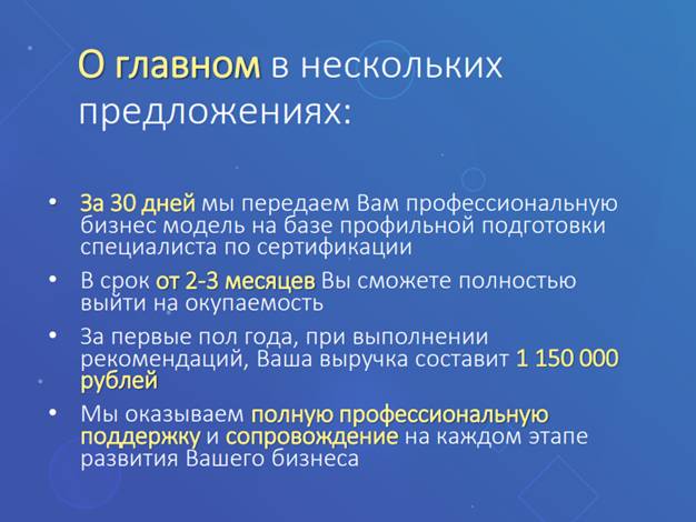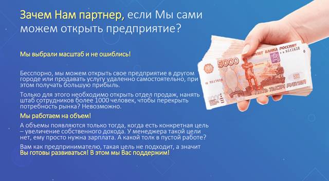 Пока мы не перешли к самому интересному, а именно – отзывам, пройдемся еще по презентации, в которой также затронут немой вопрос, который возникает при изучении условий данной франшизы (не совсем правда понятно, зачем так закапывать себя еще на этапе просмотра презентации)
