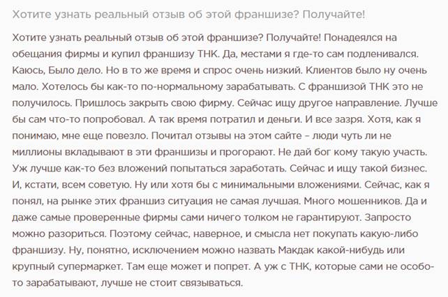 Франшиза ТНК Купил франшизу, получил головную боль вместо бизнеса