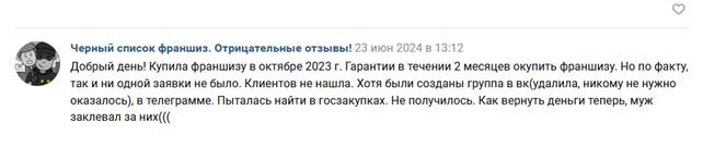 Хочу оставить отзыв о компании. Во франшизе есть готовый сайт, клиентская база для работы, реклама, обучение и сопровождение. Не нужно ничего придумывать с нуля — бери и работай.