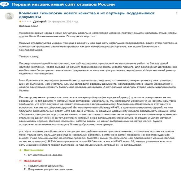 На этом же сайте идет речь о том, что ТНК якобы подделывает документы. То есть те сертификаты, которые компания производит для подтверждения того или иного продукта или услуги, якобы являются липовыми. Это конечно же недопустимо и если является правдой, то возникает масса вопросов, хотя будем надеется, что основная все-таки проблема в отсутствии клиентов и постоянной необходимости «подкармливать ненасытный» Яндекс.