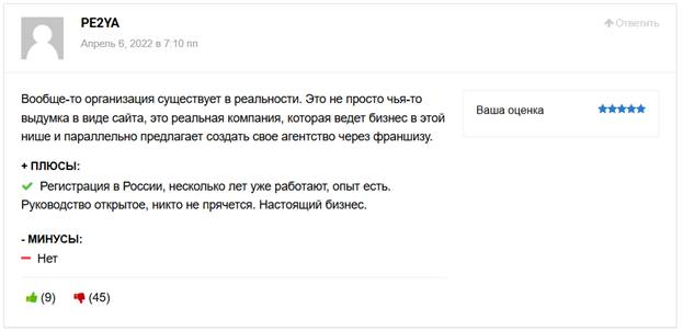 Я для того что бы приблизится к истине зашел с другой стороны и стал искать не негативные отзывы франшизы (хотя их тоже есть у меня, но о них позже), а то как это агентство в целом работает.