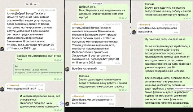 Диалог был о том, как один проект заказал реальных лидов, а ему предоставили мягко говоря некий спам, ну собственно подробности описаны выше в отзыве.